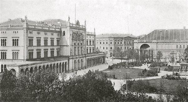 Рис. 1. Кёнигсбергский университет (Старая Альбертина) являлся старейшим университетом Пруссии. Он был основан и открыт 17 августа 1544 г. последним великим магистром Тевтонского ордена и первым герцогом Пруссии Альбрехтом Бранденбург-Ансбахским. Университет Альбертина и городской оперный театр на Парадной площади, ок. 1910 г.