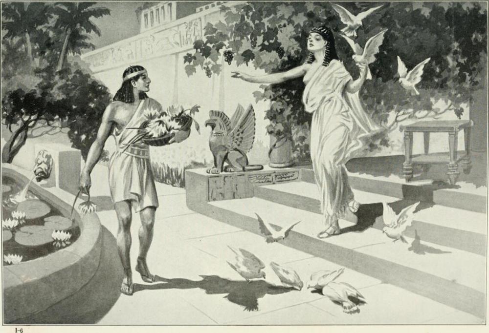 Иштар, окружённая облаком голубей, предстаёт перед молодым садовником Саргоном. Иллюстрация новоассирийской легенды, 1913 год.