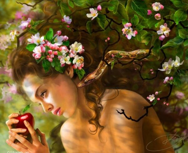 Высшее божество смотрело на неё сверху и ухмылялось в усы: «ну, ну, так и будешь изнывать? Яблочки давно созрели, созревай и ты» То есть, читатель, я хочу донести до тебя, что яблоня не выросла из ниоткуда. Она специально была помещена в сад именно так, чтобы Ева могла видеть её манящую запретность. Скажу больше: ничего сакрального изначально в яблоне не закладывалось. Сакральность, таинственность, процесс познания появились позже. Их взрастила внутри себя женская особь. Внутренний голос буквально довёл её до безумия. Естественно она не смогла сопротивляться самому сильному чувству женского любопытства.