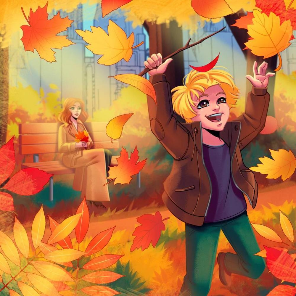 Несколько дней назад Крис гулял со своей мамой в парке. Октябрь выдался тёплым и солнечным. Парк был усыпан жёлтыми и красными листьями. Мама собрала большой букет кленовых листьев и сказала Крису: