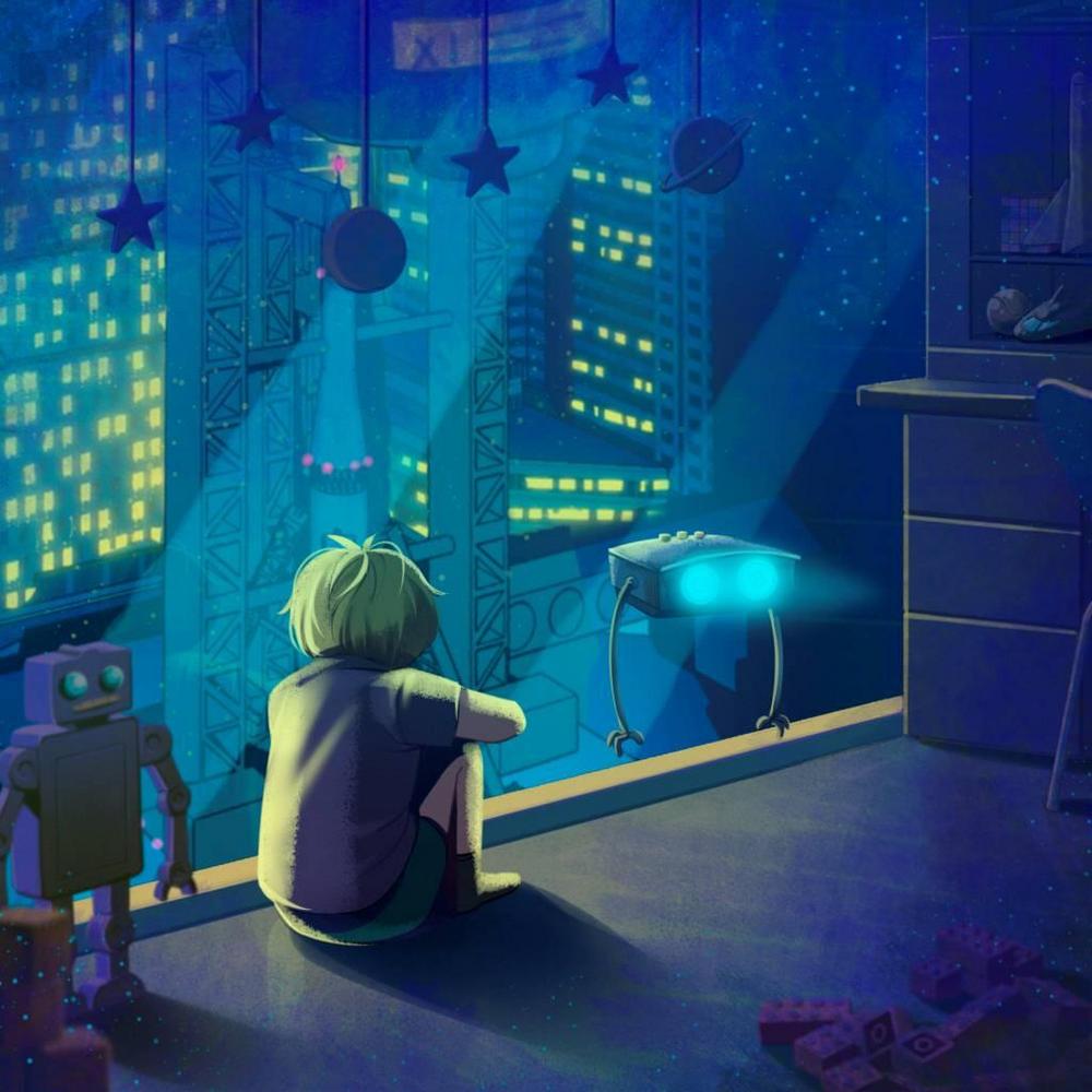 Мальчика звали Крис. Ему недавно исполнилось шесть лет, и он считал себя очень взрослым. А вот у его друга имени не было. Вернее, Крис никак не мог его запомнить, потому что это был длинный набор цифр и букв, который он получил на заводе. Поэтому Крис называл его просто Роби.