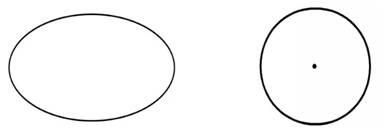 Потом Отрезки стали изгибаться, образовывать кривые линии в двумерном пространстве и тогда у них кроме длины появлялась ширина. А один Отрезок так изогнулся, что получилась окружность. При этом внутри окружности появилась Точка центр окружности. Другой Отрезок стал овалом. Отрезок так изогнулся, что исчезли Точки по концам Отрезка.