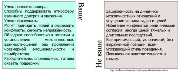 А вот если эта роль не ваша, то получится довольно смешно (чтобы не сказать «грустно»). Во-первых, вся работа для вас превратится в постоянное налаживание межличностных отношений со всеми, чтобы считаться хорошим менеджером. Во-вторых, конфликты будут тщательно маскироваться и избегаться, при этом основная задача менеджера сводится к достижению какого-то равновесия в отношениях с коллегами, чтобы всё внешне казалось пристойным и достойным. Менеджер превращается в такого «исполнителя хотелок» для своего персонала. Сама работа превращается в «клуб по интересам», результативность стремится к нулю.
