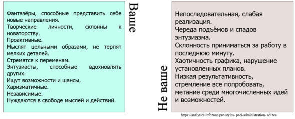 Как правило, это очень креативные люди, творческие личности, которые склонны к новаторским идеям. Действуют такие менеджеры активно, их не устраивает стабильность им нужны перемены. С точки зрения влияния на коллектив, они вдохновители и энтузиасты. Они самодостаточны, независимы, но им для реализации задуманного нужна свобода действий. Если такого человека поставить на позицию, требующую исключительно административных навыков, он быстро покинет компанию это не его, ему это не интересно. Его место там, где нужно что-то внедрять, проверять на практике, придумывать. Скорее всего, в кросс-функциональном взаимодействии с маркетологами или другими департаментами.