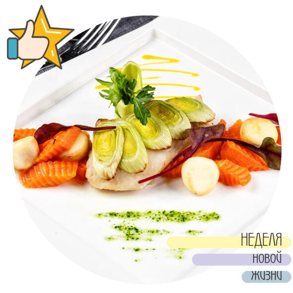 Подготовленное филе морского окуня без кожи и костей нарезаем порционными кусками, выкладываем в сковороду или сотейник, добавляем соль, нарезанный лук порей, горячую воду, закрываем крышкой и тушим 1215 минут. При подаче украшаем зеленью и добавляем гарнир булгур с вешенками.