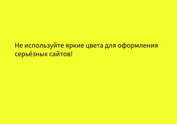 Страница сайта должна быть белой или светлого оттенка любого цвета. Нельзя использовать яркие и «кислотные» цвета, они будут отвлекать внимание от контента. Из этого правила есть исключение, страницы сайта об электронной музыке, граффити, современном искусстве могут быть любого цвета.