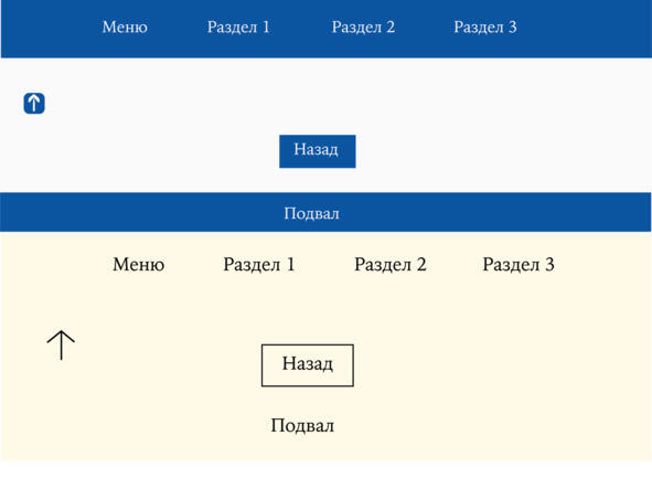 Правило контраста распространяется на оформление кнопок, меню, подвала и т. п.