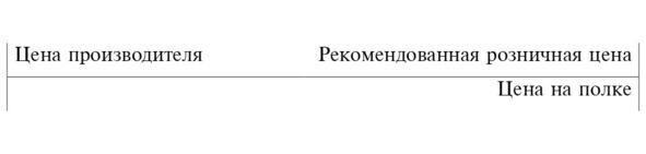 Таким образом, имеем отрезок, на краях этого отрезка цена производителя и рекомендованная розничная цена цена товара «на полке».