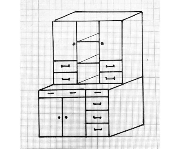 Рис. 3.1. Схематичный чертеж буфета, переделанного из компьютерного стола.