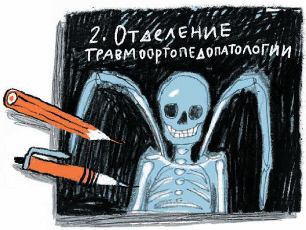 Больница оказалась старенькая, даже окна почти везде были не пластиковые, а деревянные с двойными рамами. Невысокие кирпичные корпуса врастали в парк. Из приоткрытого окна смотровой пахло поздней сиренью, одуванчиками и дождевыми червяками. А коридоры этой маленькой больницы провоняли зелёнкой (страх всегда пахнет зелёнкой), старой штукатуркой и стиральным порошком с лимонным ароматизатором. У Миши сразу взяли кровь, анализ слюней (пришлось три раза плюнуть в баночку) и пробу пера (для экспертизы крыльев). Ещё была дурацкая гастроскопия с прямо-таки цирковым проглатыванием шланга. Потом измерили вес, рост, давление, температуру, мышечную и подмышечную силу и сделали рентген во всех проекциях. Сфотографировали и лёжа, и стоя, и сидя, и даже в полёте. Миша увидел свой скелет в полный рост на гигантских чёрных плёнках. Ничего так скелет, подходящий, можно на аватарку в соцсетях поставить. А у крыльев внутри оказались самые обычные кости. И крепились крылья так, словно всю жизнь вместе с Мишей росли.