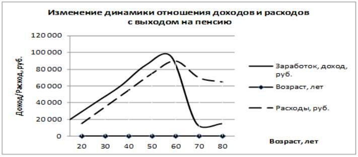 Посмотрите внимательно, что происходит (произойдет)! К началу нетрудоспособного возраста вы привыкли к определенному образу жизни, что требует постоянного обеспечения деньгами. И получаемых вами денег всегда хватало. И вдруг, источник резко снижается, а расходы остаются практически прежними.