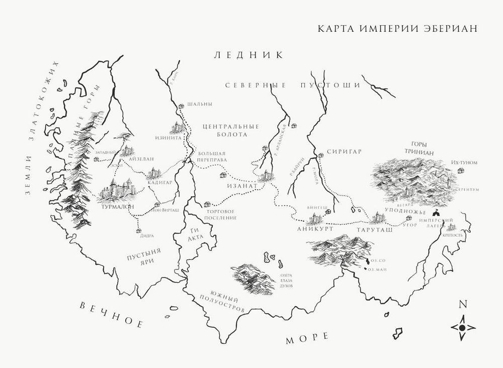 С глубокой благодарностью талантливому художнику Елене Львовой за дизайн обложки и карты Эбериана, моим первым читателям Надежде Жуковской и Юлии Корнауховой за чуткие советы и внимательное отношение к тексту, а также моей семье: мужу за мотивацию и юридическое сопровождение в процессе издания книги и папе за неугасающую веру в мой успех.