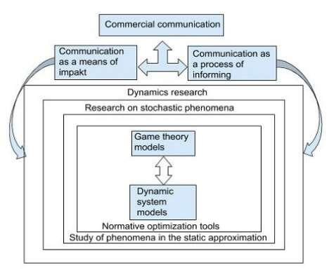 Fig. 1. The system connections of mathematical tools and methods of modeling commercial communications.