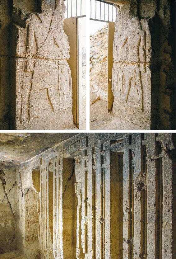 Рельефы по бокам входа и на западной стене скальной гробницы Хафраанха, вторая половина V династии (XXIV в. до н. э.)