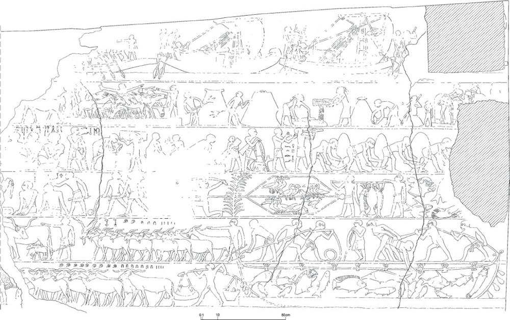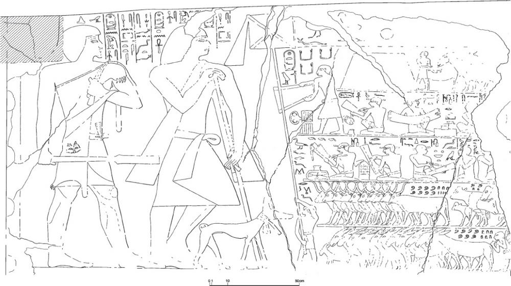 Прорисовка рельефов на восточной стене гробницы Хафраанха, вторая половина V династии