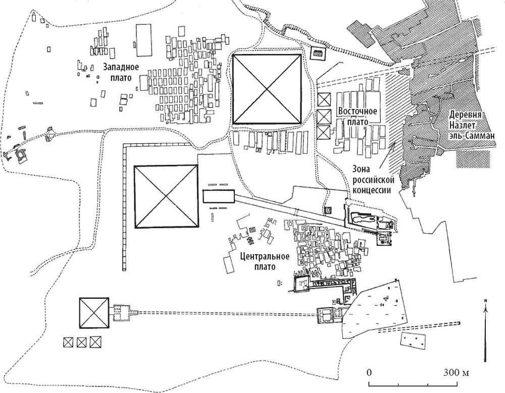 План Гизы с указанием места расположения зоны концессии Российской Западное археологической плато экспедиции Института востоковедения РАН