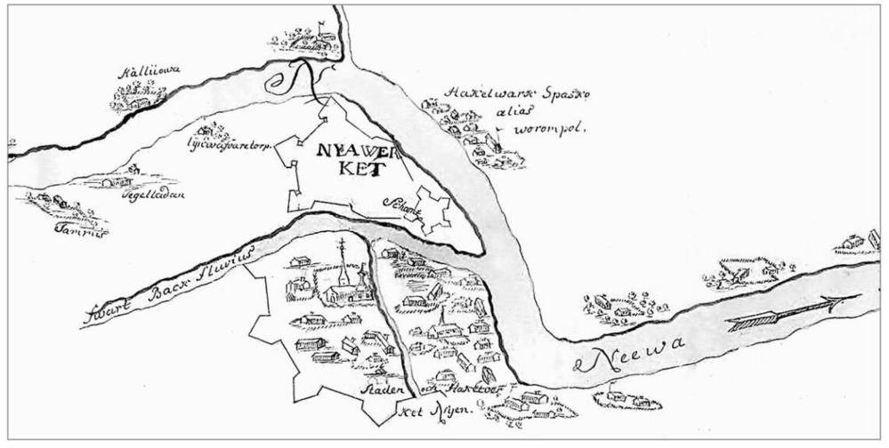 Крепость Ниеншанц и город Ниен. Фрагмент карты. II пол. XVII в.