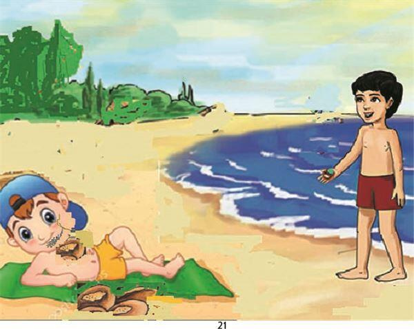 Вдруг он услышал знакомый голос: «Помогите! Помогите!» Да, это был Купоня! Вот он пулей пронесся мимо Пуни. За ним с огромной, раскрытой пастью, усыпанной острыми зубами, неслась громадная Щука. Еще мгновенье, и она проглотит Купоню!