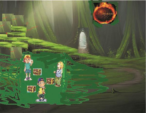 Вдруг прямо у них над головой засверкали молнии, а затем раздался оглушительный раскат грома. Из молний отделился огненный шар и стал медленно опускаться прямо на друзей. Грохот грома усилился. Какая-то неведомая сила подняла попунят на ноги и расставила их по кругу лицом друг к другу. В центре круга остались лежать бабушкины сундучки. Огненный шар опустился вниз и ушел под землю, унося с собой сундучки.
