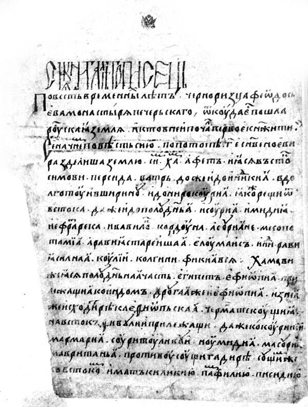 «Сия книга Летописец. Повесть временных лет черноризца Феодосьева монастыря Печерского, откуда есть пошла Русская земля и кто в ней почал первое княжити», рис. 1.