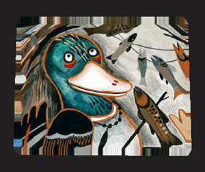 Жил он один-одинёшенек в маленькой хатке у глубокого озера. Зимой все птицы спешат на юг, а вот Шингебисс даже в лютые холода оставался дома. Вода превращалась в лёд, а у селезня в хатке всегда было тепло: четыре волшебных полена всё время пылали у него в очаге. А зимняя стужа стояла ровно четыре месяца. Поленьев как раз хватало по одному на месяц. А там уже и весна!