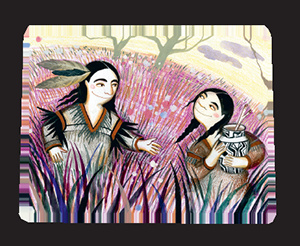 Близились холода. Готовясь к зиме, Маленький Цветок каждый день уходил в горы охотиться на оленей. Как-то утром ушёл он из дому, а Белая Кукуруза взяла кувшин и отправилась за водой на озеро Зелёных Ив. Наполнила она кувшин доверху и вдруг заметила под водой волшебную палочку. Потянулась за ней и достала.