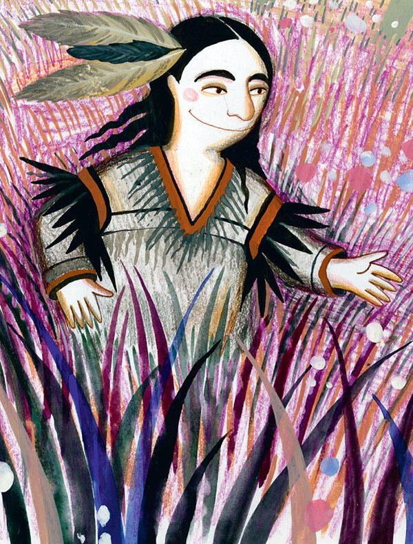 Близились холода. Готовясь к зиме, Маленький Цветок каждый день уходил в горы охотиться на оленей. Как-то утром ушёл он из дому, а Белая Кукуруза взяла кувшин и отправилась за водой на озеро Зелёных Ив. Наполнила она кувшин доверху и вдруг заметила под водой волшебную палочку. Потянулась за ней и достала.