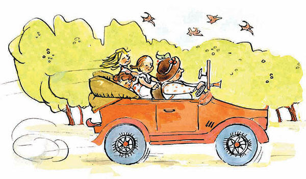 Прыгайте скорей в машину, велела Мармеладная бабушка и, уложив в багажник корзину с едой, села за руль.