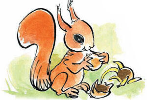 Не успели девочки испугаться, как уже очутились вместе с бабушкой на ветке орехового дерева.