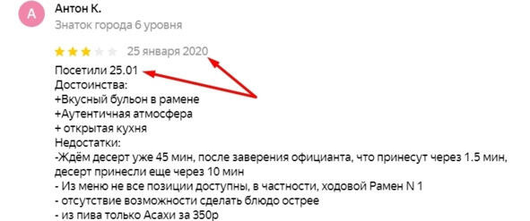 Ресторану японской кухни в примере на рисунке необходимо проинструктировать официантов и работников кухни о времени подачи блюд, а также ответить недовольному клиенту от имени официального аккаунта заведения. Человек оставил комментарий непосредственно в день посещения ресторана «по горячим следам», и он точно ждет реакции на свое сообщение. Если сделать всё грамотно, есть шанс вернуть его доверие.