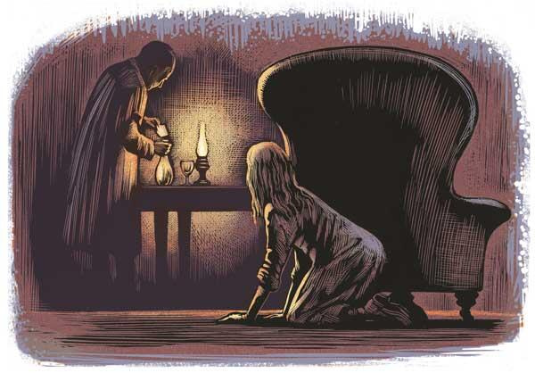 Она услышала свистящее дыхание Стюарда и через щелку неплотно прикрытой дверцы увидела, как он поправляет курительные трубки и осматривает графины и бокалы. Потом он пригладил ладонями волосы на висках и что-то сказал своему деймону. Он был слугой, а деймон его собакой. Но слуга он был высшего разряда, и собака тоже. Деймон его имел вид рыжего сеттера. Он что-то подозревал и бегал по комнате, словно почуяв непрошеного гостя, но, к большому облегчению Лиры, гардеробом не заинтересовался. Лира боялась Стюарда, который ее дважды бил.
