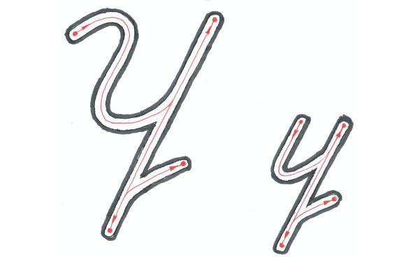 Задание 2. Обвести прописную букву цветными карандашами по очереди: красным, жёлтым, зелёным и синим.