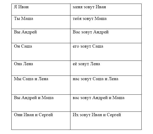In the official styles, the patronymic (fathers name) is also used together with the name. For example, Alexander (name) Sergeyevich (patronymic) Pushkin (last name). There are also full and short names. In an informal style, short ones are most often used.