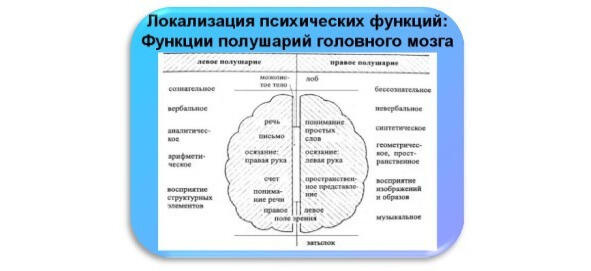 Кроме того, любое восприятие связано с местоположением психических функций полушарий головного мозга.