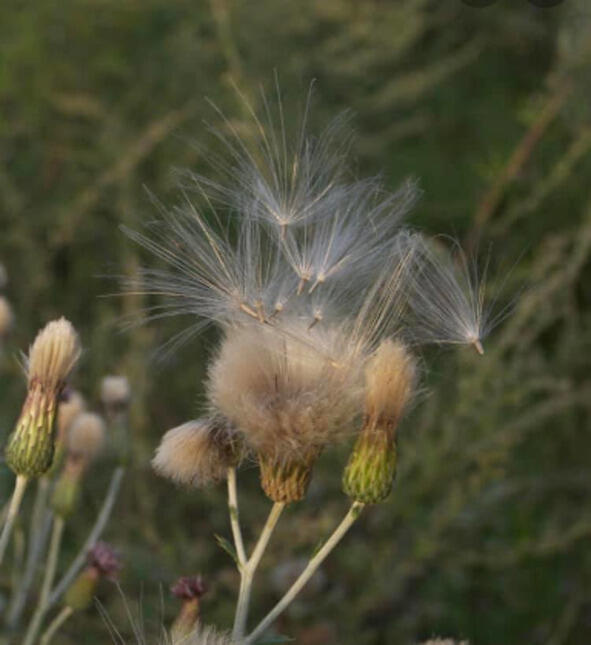 Упиваюсь игрой ветра в зрелых ветвях, полетом осотового пуха и нечаянной встречей с неведомым композитным существом (немного улиткой, немного гусеницей, немного ящерицей), изображающим сухой листок.