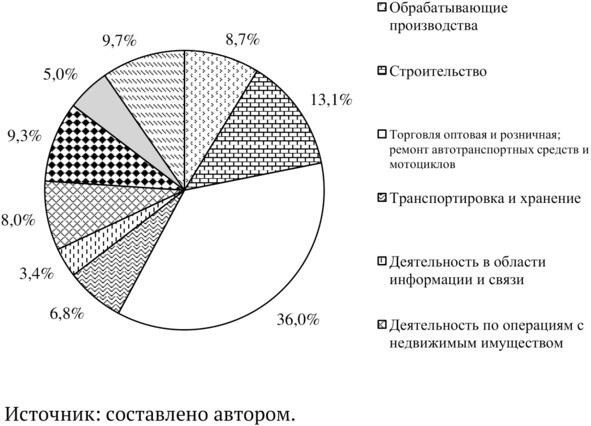 Рисунок 2 Распределение субъектов предпринимательства по видам экономической деятельности