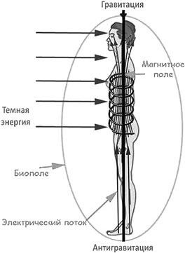 Оптические потоки тела, идущие вдоль гравитационного коридора, являются мужской энергией, а магнитные потоки вокруг него танцем женской энергии вокруг мужского постоянства (рис. 16). В итоге наши органы выкладываются на «магнитные тарелочки», которыми становятся диафрагмы тела. Конечно, чисто в физическом плане органы держатся на связках. Но не будь магнитного поля, те растянулись бы гораздо раньше.