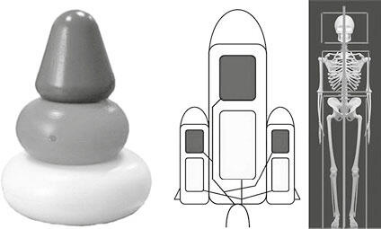 Наши три ступени тела (голова, верхняя и нижняя половины тела) нанизаны на гравитационную ось, как колечки в игрушечной пирамиде. Точно так же создана и ракета. Если бы она не стояла прямо или не была выстроена симметрично, она бы никогда не взлетела.