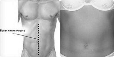 Рис. 29. Белая линия живота; отсутствие белой линии живота(справа)