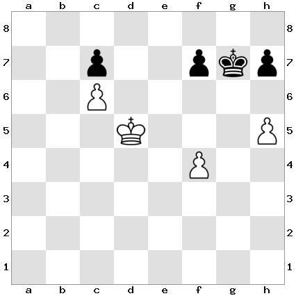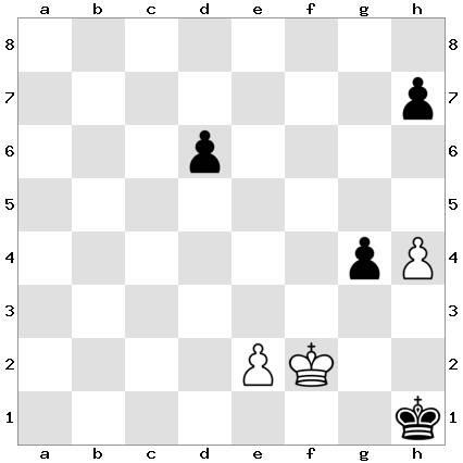 1. h6 Кd6 2. h7 Kf7+ 3. Кре7 Kh8! 4. Крf6!! и белые не позволяют черному королю войти в ничейный прямоугольник h5-h8-d8-d5. После гибели коня, пешка белых успешно завершит свой марш в ферзи. Выигрыш.
