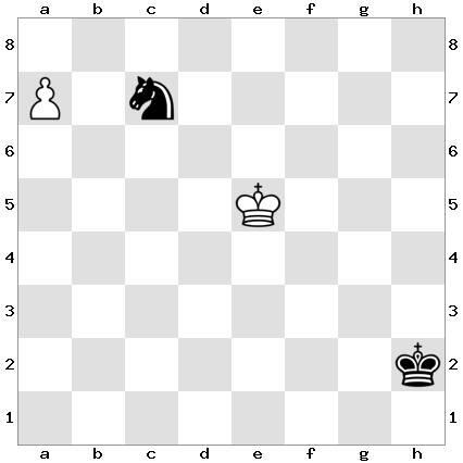 Нетрудно проверить, что, если король защищающейся стороны будет находиться на любом другом поле внутри такого прямоугольника, а его конь сможет задержать ладейную пешку соперника только на предпоследней горизонтали, будет ничья.