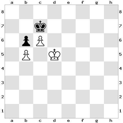 Чтобы выиграть, белым необходимо: пожертвовать свою пешку c6, занять критическое поле пешки b6 (d6 или c6) и уничтожить ее, занять критическое поле пешки b5 и провести ее в ферзи.
