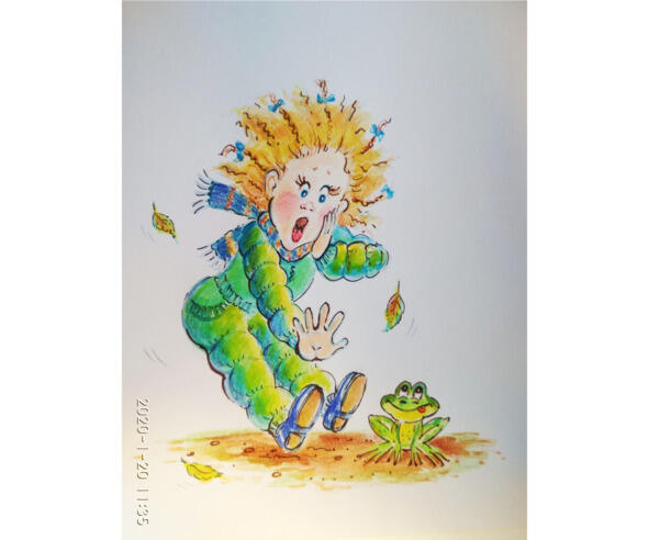 В каком-то зелёном комбинезоне. Хотела к ним на скамейку присесть да вдруг как отпрыгнет, как заорёт: «О-о-й! Что это?! Стах-то какой!». Побледнела вся, глаза от испуга вытаращила, губы дрожат. У Симы даже холодок по спине пробежал, будто за шиворот ей ледяной воды плеснули. Ноги затряслись, головой вертит, ничего не понимает. А подружек как ветром сдуло. Тут вдруг из-под скамейки лягушонок выскочил. Маленький такой. Нашли, кого пугаться! Лягушат, что ли, не видели? Даже смешно стало.