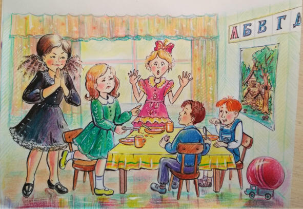 У Ленки сегодня день рождения. Её утром при всех ребятах воспитательница поздравляла. И даже подарила ей коробку с фломастерами. А ребята хлопали. За спиной Завидка, как из-под земли, выросла. В чёрном бархатном платье как на концерт вырядилась. Давай ей прямо в ухо нашёптывать: «Ты смотри, сколько этой Ленке почестей! Принцесса, да и только! И в каком платье нарядном! С воланами да кружевами! Ещё и бант в волосах яркий! Самой красивой в группе хочет быть! Смотри, Симка, смотри! Все мальчишки ею любуются. Ты ведь, Симочка, в сто раз лучше её, а на тебя внимания не обращают. И платья у тебя такого нет. Это ж несправедливо!».