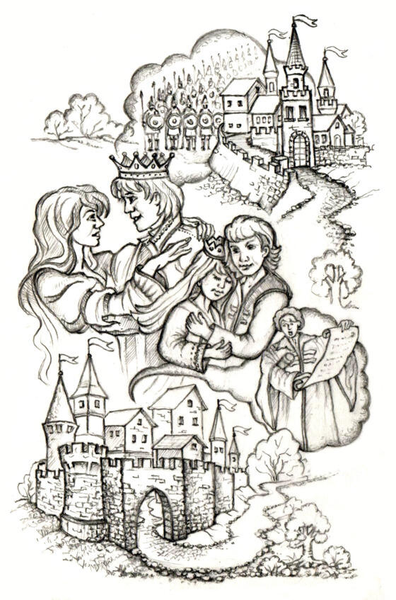 Ехали три дня и три ночи. В полдень прибыли в столицу государства. Увидели, что площадь перед дворцом народом заполнена. Прогудели трубы. Наместники огласили волю короля.