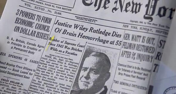 Justice Wilry Rutledge Dies Of Brain Hemorrhage at 55