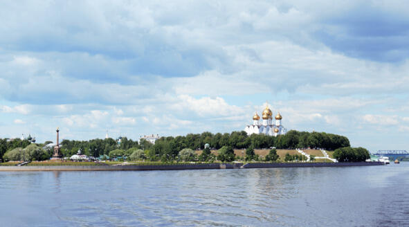 В середине XVII века купцами Скрипиными строится церковь Ильи Пророка. Чуть позже на правом берегу Волги в Коровницкой слободе возводится целый храмовый комплекс. Его краснокирпичные стены и зеленые купола будут хорошо видны с борта теплохода, когда мы отойдем от речного вокзала.