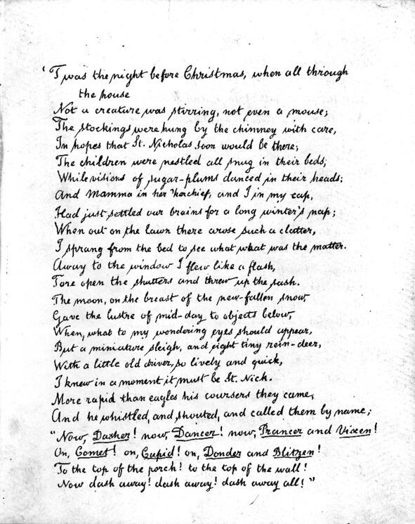 Рукопись «Визита Святого Николая» К. К. Мура. Из фондов Нью-Йоркского Исторического Общества