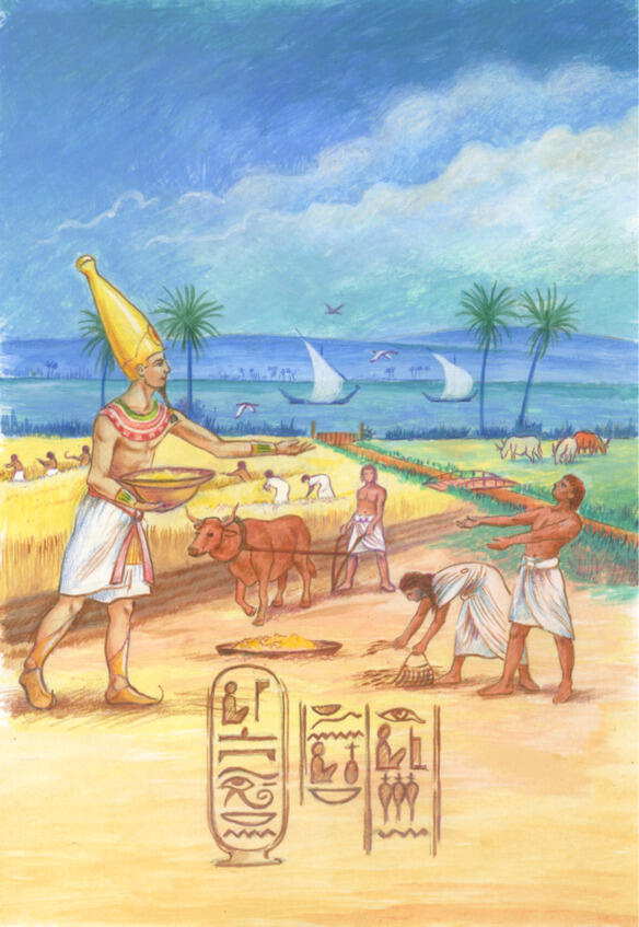 During the many years of his reign, the sovereigns dream of a just society did not fade for a moment. He considered his greatest achievement to be that he improved the lives of ordinary people. Now every Egyptian had his own plot of land and a roof over his head, and the children went to school for free. For a long time Osiris and Isis had no children of their own. They did not despair of this, and they knew that they would someday have an heir to whom they could leave their kingdom.