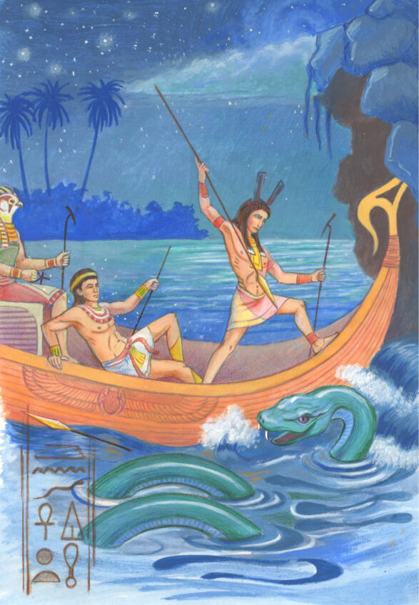 On one such occasion, Osiris was again telling the story of that night to his honored guests. He told them that he remained indebted to his brother, who had no fear of the serpent and saved his life. Because of this gallant feat, Osiris could now stand before these important guests, and for this reason, he said, the hero of the day was not the pharaoh but his protector, Set. To honor his safe return, the ruler asked Set to accompany Ra on the river that night. Set agreed, and Osiris told Ra the news.